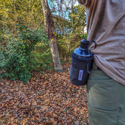 - XL Nest fits most 20-46oz water bottles, (Nalgene, Yeti Rambler, Grayl). Includes belt loop attachment.